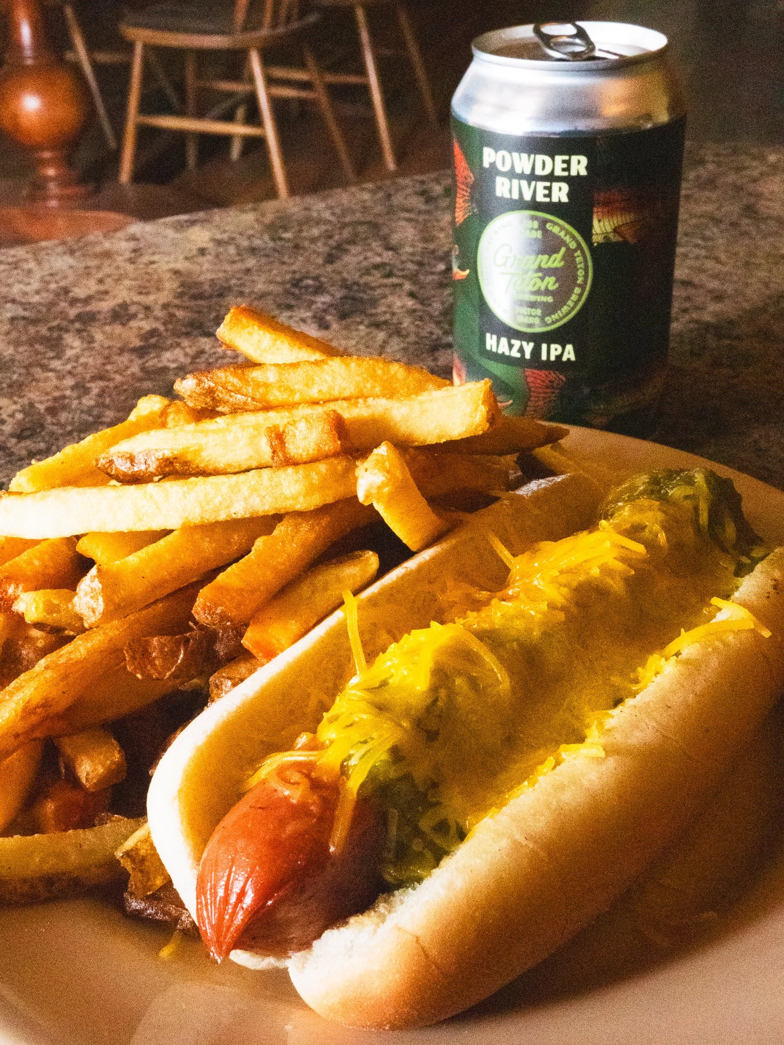 I paired it with a Powder River Hazy IPA from @grandtetonbrewing - all together $13. $9 for the dog and fries, and $4 for the beer. That's a pretty good deal these days. You could get 2 for $13, but maybe next time, they have 3 other dogs I'll be back to try.